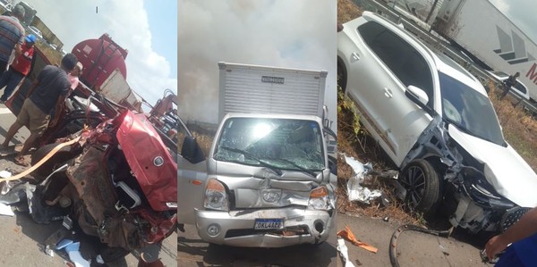 Acidente aconteceu no fim da manhã desta segunda-feira (6) e provocou o engavetamento de vários veículos, dentre eles, caminhões de carga, automóveis e caminhonetes. Equipes