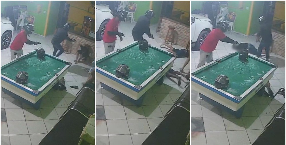 Amigos estavam descansando no bar na companhia de uma mulher quando foram surpreendidos pelos criminosos. A mulher saiu ilesa. Dois homens em uma moto invadiram e
