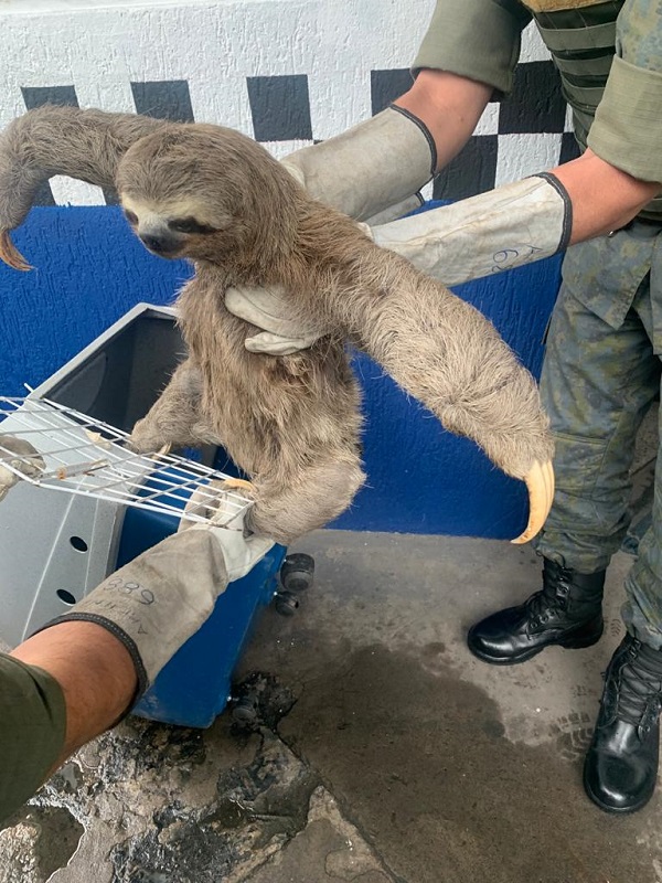 O animal subiu em limoeiro perto de uma área de risco. Um bicho-preguiça foi encontrado em uma praça no bairro Guaranorte, em Guarantã do Norte, a